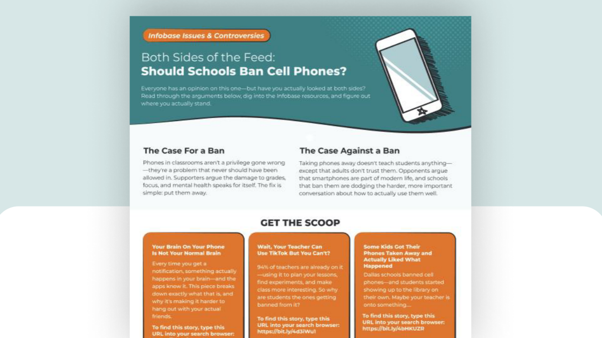 Every month, Infobase publishes a printable built around the debates your community is already arguing about. This one’s for the teen who has a strong opinion, and the parents looking for some data to back them up.